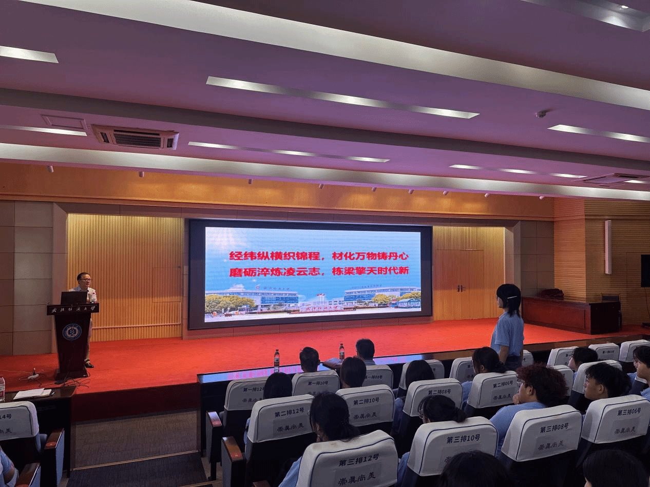 执行院长杨应奎以“材通天下,料定未来”为主题,从校情、院情及学科应用三方面为新生勾勒出全景蓝图。立足“校之基”,以详实数据凸显办学硬核实力。 他从校区分布、学科排名与科研成果等方面入手,系统展示了学校作为高层次人才培养平台的坚实基础与综合优势。聚焦“院之魂”,以发展脉络诠释育人卓越成效。 他回顾了材料学院从1993年“缘起纺织”到如今拥有三大本科专业与完整培养体系的特色发展之路。学院不仅拥有一流师资队伍,更在“挑战杯”等国家级赛事中屡获殊荣,毕业生升学至华中科技大学、武汉大学等海内外名校,彰显了“教学—科研—育人”协同发展的强劲势头。展望“材之用”,以宏大视野激发学子使命担当。 他紧扣“材料是人类文明的基石”,通过快舟火箭、海底隧道等“上天入地”的案例,生动阐述了材料学科在服务国计民生中的关键价值,并激励新生将个人理想融入国家战略,在未来探索中实现价值的同频共振。