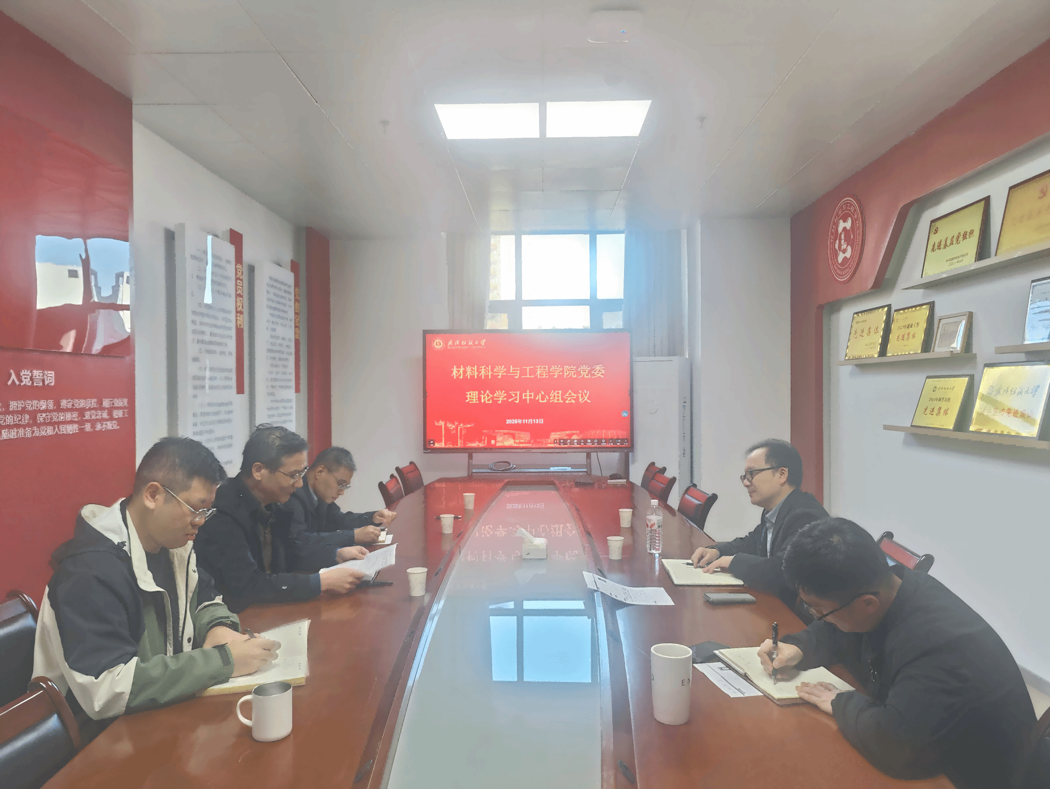 近日,材料学院党委理论学习中心组召开专题学习会。本次会议以深入学习习近平总书记重要讲话精神、全面贯彻落实党的二十届四中全会部署为核心内容,紧密围绕理论与实践相结合的要求,为学院实现高质量发展明确方向、锚定目标。会议由学院党委书记王罗新主持,全体党委委员参加会议并开展学习研讨。