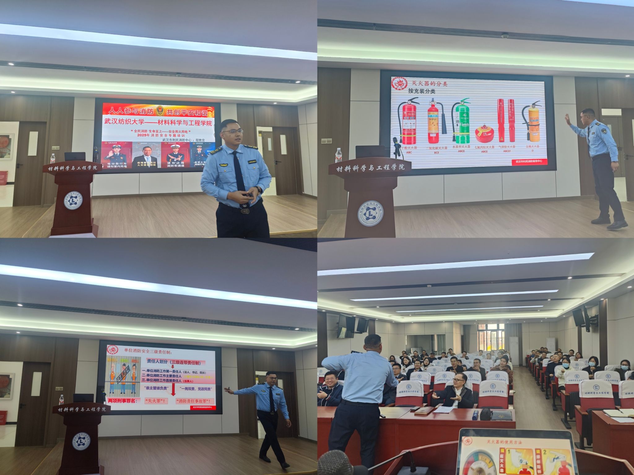 为切实增强全体教职工的消防安全意识,提高应对突发火灾时的应急处置能力和自防自救技能,扎实推进平安校园建设工作,2025年11月27日下午,材料科学与工程学院特别邀请武汉市利民消防技术服务中心的程良波教官,为教职工开展了一场消防安全知识专题讲座。全体教职工均参加了此次培训。