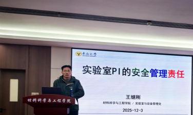 2025年12月3日上午,由资产与实验室管理处主办、材料科学与工程学院承办的“实验室安全专家专题讲座”在阳光校区12号楼317会议室举行。本次活动作为学校安全月系列活动之一,特邀东南大学材料学院博士生导师王继刚教授主讲,主题为“实验室PI的安全管理责任”。讲座由材料学院党委书记王罗新主持,材料学院部分师生及学校实验技术人员参加了本次活动。