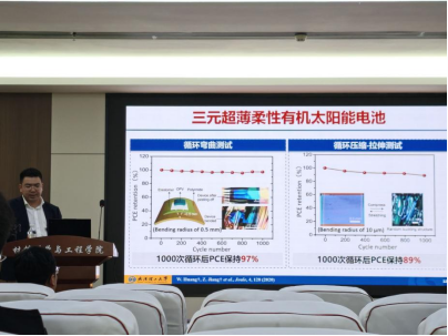 在本次论坛中,黄文超研究员围绕超薄柔性有机光电器件展开了深入讲解,对有关有机半导体材料开发、大面积超薄柔性有机太阳能电池组件制备关键技术等进行了介绍。黄文超长期致力于有机半导体材料与器件、柔性/可拉伸电子以及聚合物基复合材料的研究,在有机半导体薄膜微结构调控机制、大面积印刷制备工艺、超薄柔性光电器件的创新设计等方面取得了一系列具有原创性的突破性成果。至今已在Science、Nature 等国际顶尖学术期刊发表论文100余篇,总被引次数超过10,000次。其研究成果荣获省部级科学技术奖励2项,并获得澳大利亚同步辐射Stephen Wilkins奖章(首位华人)。此外,还担任中国青年科技工作者协会理事及《Interdiscipl inary Materials》期刊学术编委。黄文超研究员以“超薄化+高柔性+高效率”为研究核心,在器件界面工程、新型架构设计与机械稳定性优化上成果显著。