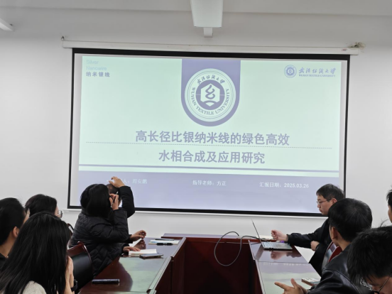 2026年3月26日,武汉纺织大学材料科学与工程学院在阳光校区成功举办了2026年第3期研究生学术论坛。本次论坛由吴静、柏自奎两位老师担任指导评委。学院硕士研究生李朝阳、周安鹏、胡胜、吴昊达四位同学围绕材料科学前沿领域,依次汇报了最新科研进展,集中展示了学院在太阳能水蒸发、纳米材料合成、催化材料设计及固态电池电解质等方向的前沿探索成果。