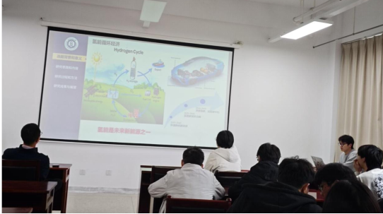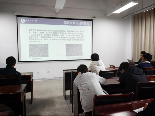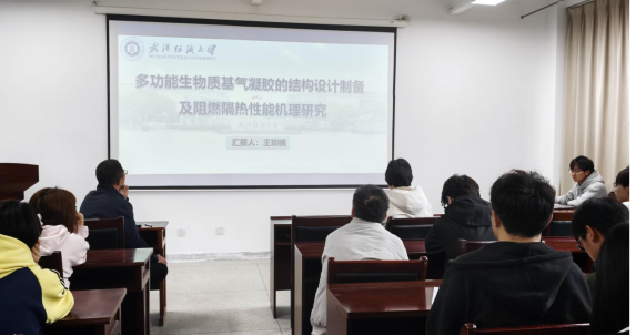 2026年4月23日下午14:00,武汉纺织大学材料科学与工程学院在阳光校区12教309教室成功举办2026年第6期研究生学术论坛。本次论坛由研究生院主办、材料科学与工程学院承办,杨晨光、李晨两位老师担任指导评委。学院硕士研究生徐琦、王圳楠、王伟豪、龚昀泽四位同学围绕绿色功能材料、新能源催化、复合纸基材料等前沿方向,依次汇报最新科研进展,集中展示学院在氢能催化、生物质气凝胶、生物基疏水涂层及高性能复合纸领域的创新探索与应用成果。