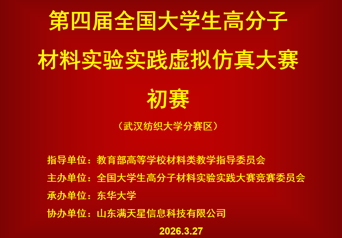 为了迎接即将举行的第四届大赛,在组委会的统一安排下,我院于2026年3月27日举办了第四届全国大学生高分子材料实验实践虚拟仿真大赛(武汉纺织大学分赛区)初赛暨校内选拔赛。
