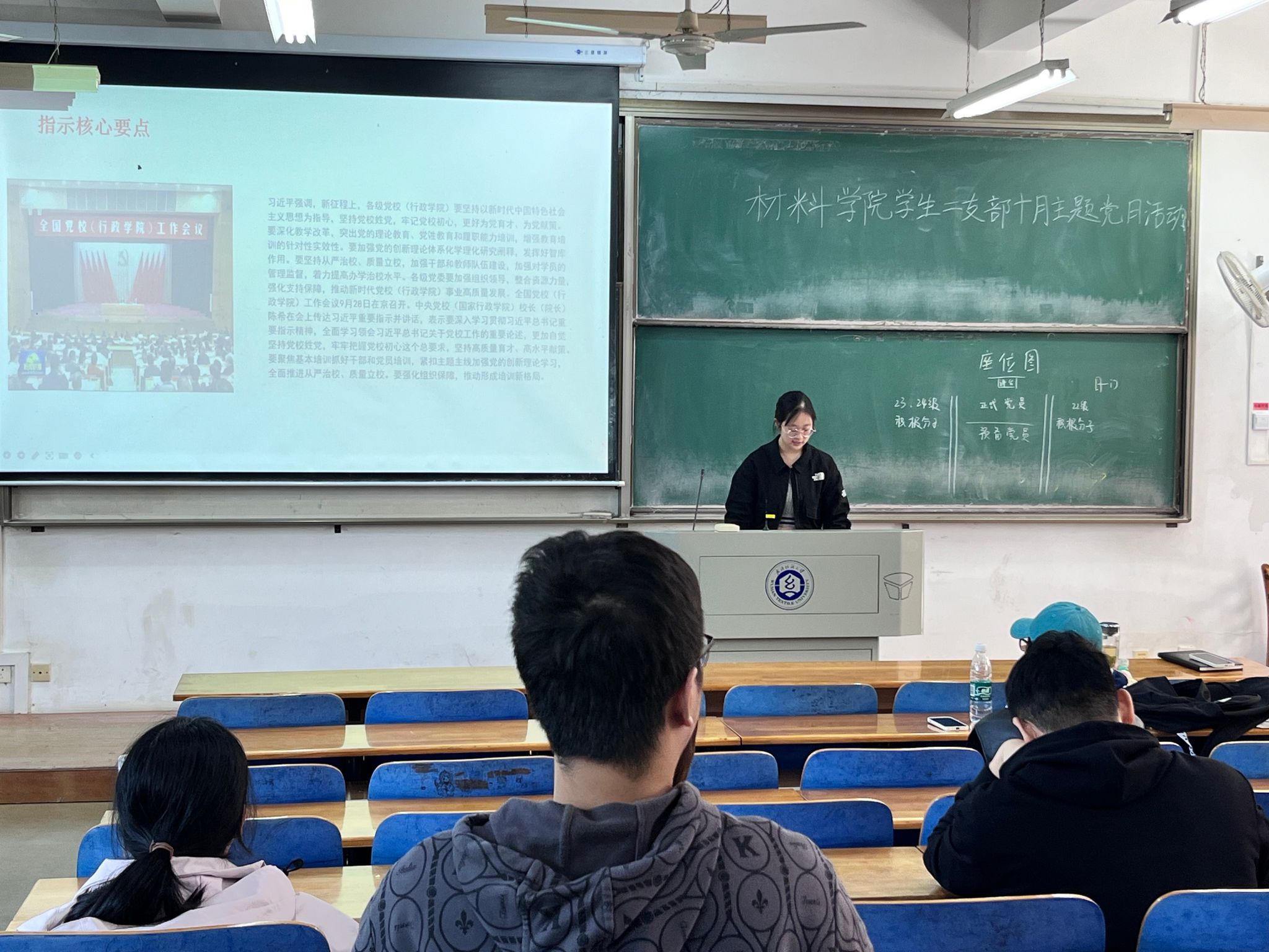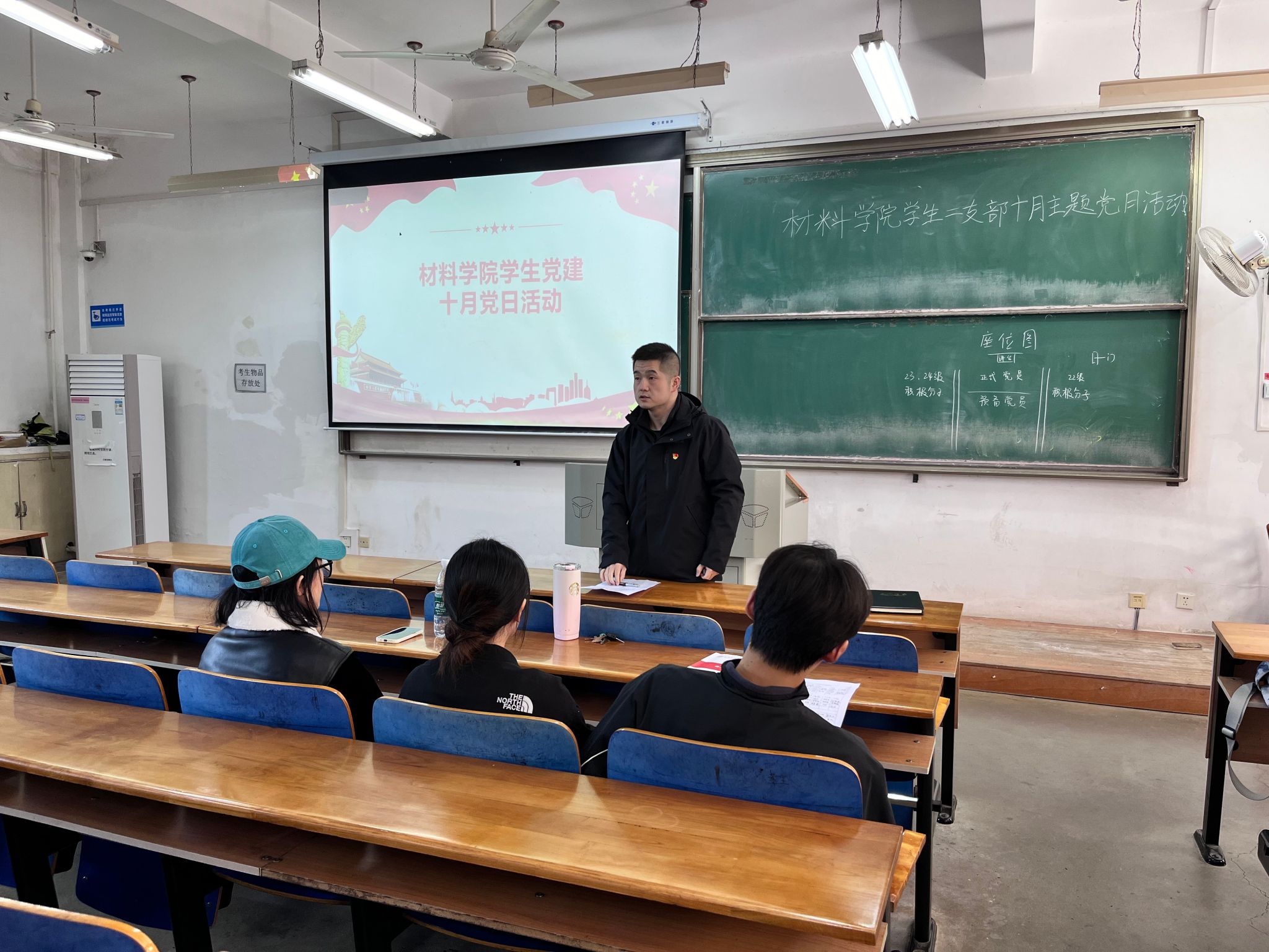 为深刻领会党中央最新精神和战略部署,加强学生党员理论武装和党性修养,10月28日,材料科学与工程学院学生第二党支部组织召开了10月份主题党日活动。会议由支部书记胡晓主持,全体党员、预备党员、积极分子参加本次会议。
