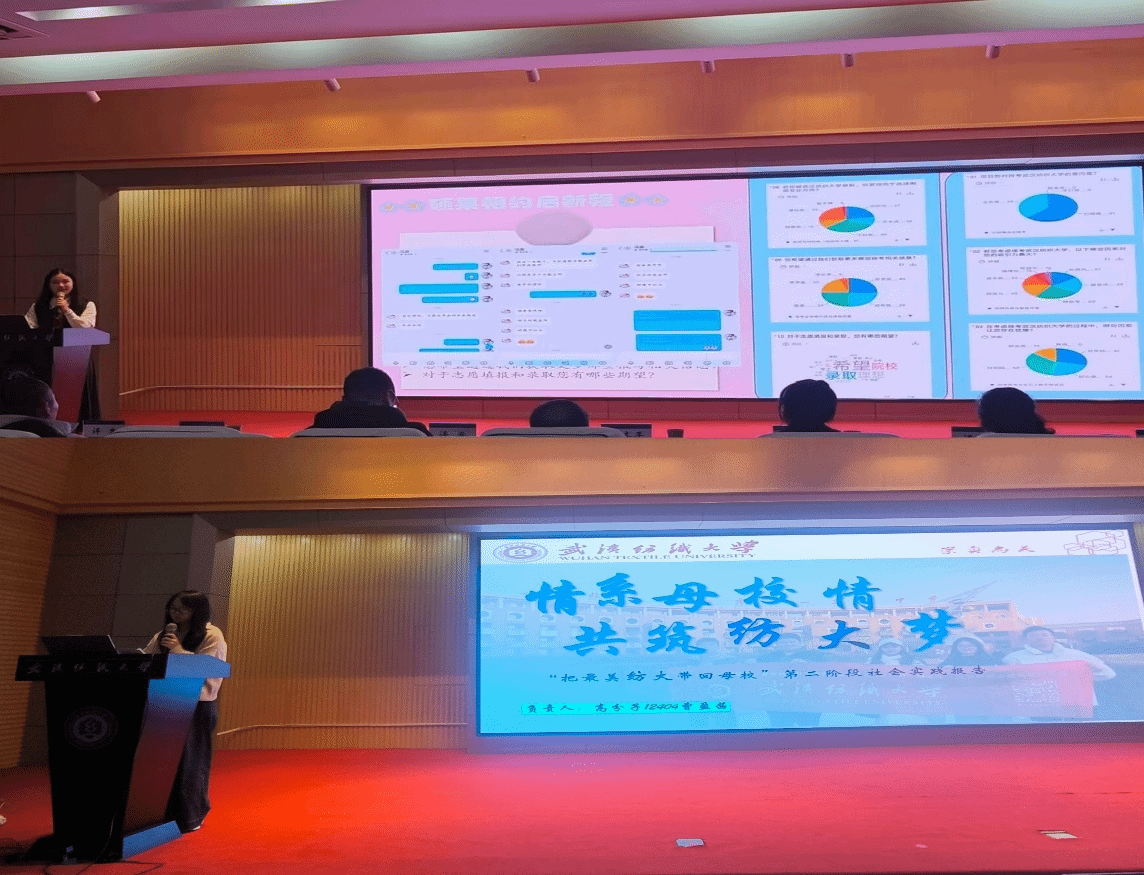答辩会上,我院参赛团队通过实物展示、视频回顾、PPT讲解等方式,结合自身求学经历,从校园环境、学科建设、文化活动等方面展开讲述,展示了精彩的实践经历。在实践中,同学们开展了“纺大故事分享”、“专业特色解读”、“互动答疑交流”等活动,生动诠释了“崇真尚美”的校训精神,分享了团队在实践过程中的感悟与收获。