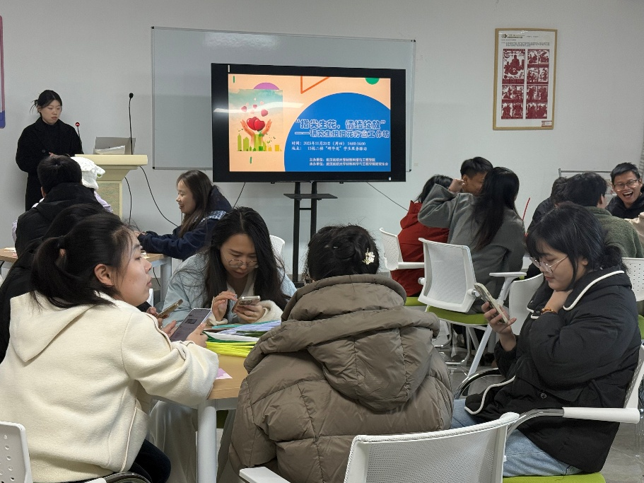 为缓解研究生学业压力,促进情绪健康表达,营造温暖互助的校园文化氛围,2025年11月20日下午,由研工部主办、材料学院承办的“指尖生花,情绪绽放”研究生手工创作心理主题活动在15栋“研华苑”学生服务驿站温情举办。本次活动吸引了全校各学院研究生积极参与,通过手作与倾诉相结合的方式,为同学们带来了一场别开生面的心灵疗愈之旅。