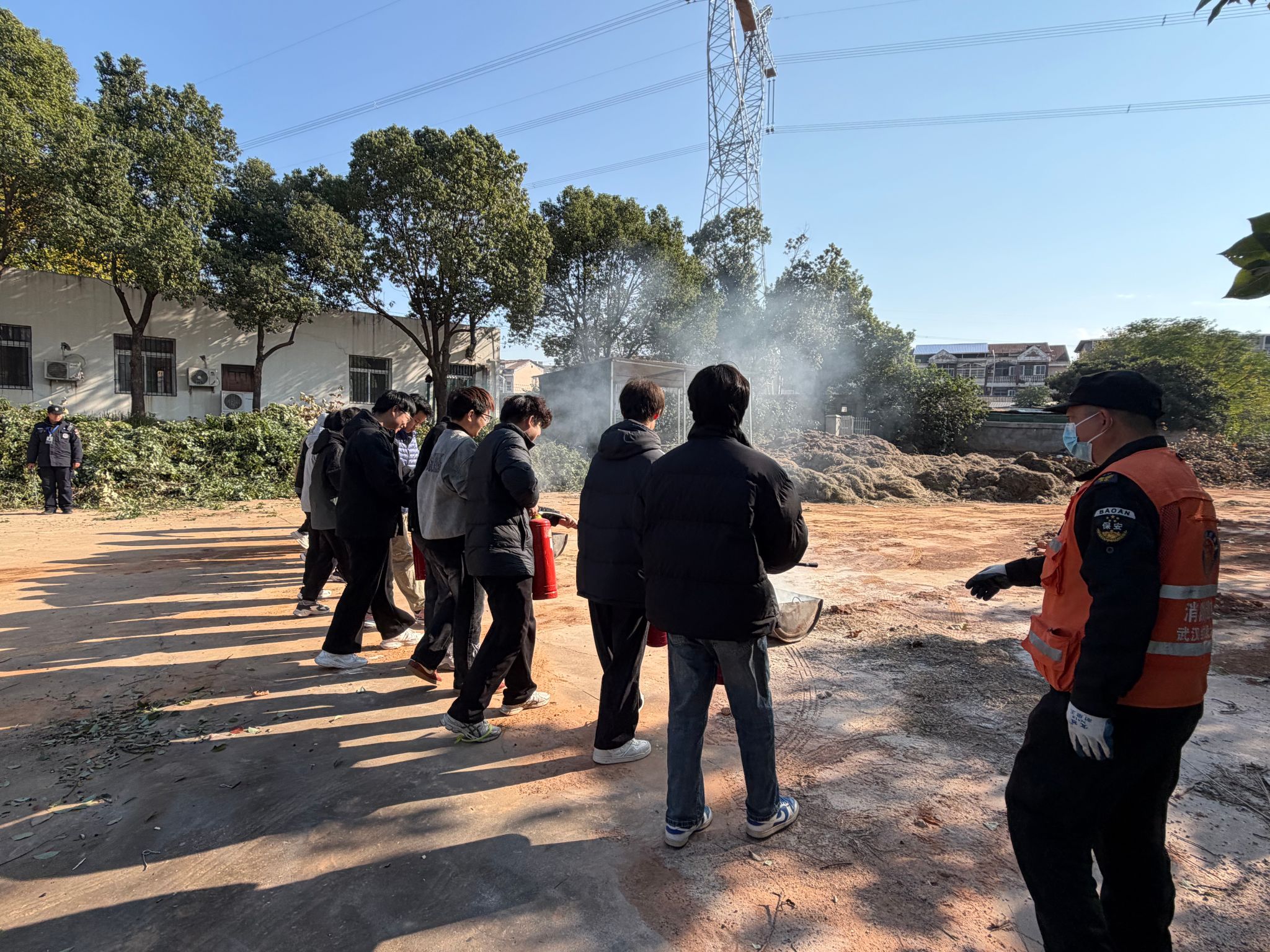 理论讲解结束后,实操演练环节随即展开。在指定演练区域,模拟火源被点燃,学生们分组有序上前,按照刘老师教授的方法,依次完成灭火器的提拿、保险销拔除、喷射灭火等操作。对操作动作不标准的学生,工作人员进行逐一纠正,确保每位参与者都能规范使用灭火器。面对真实的火焰场景,学生们沉着应对,动作愈发熟练,现场演练氛围紧张而有序。